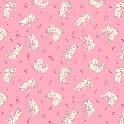 Nana Mae 6 - Musical Elephants - Pink - Henry Glass Fabric