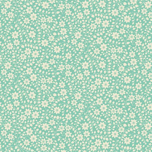 Nana Mae 6 - Monotone Floral - Aqua - Henry Glass Fabric