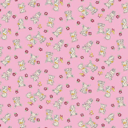 Nana Mae 6 - Bunnies & Bears - Pink - Henry Glass Fabric