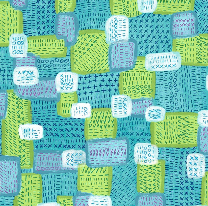Keiko Goke - Oh Happy Day! - Seed Stitch Patchwork - Aqua - Free Spirit - Fabric