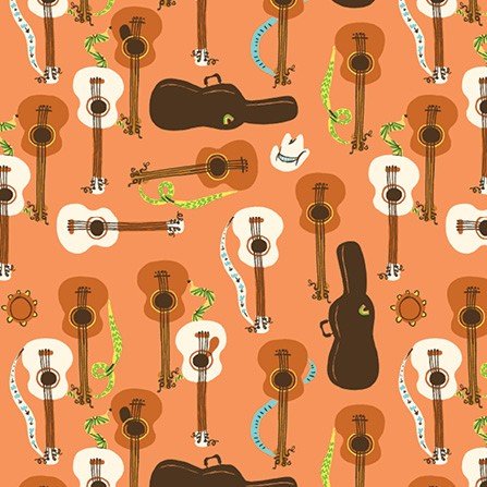 Heather Ross - Far Far Away 3 - Guitars Red orange - Windham Fabrics