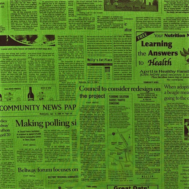 Newsprint - Green - Kei Textiles - Fabric