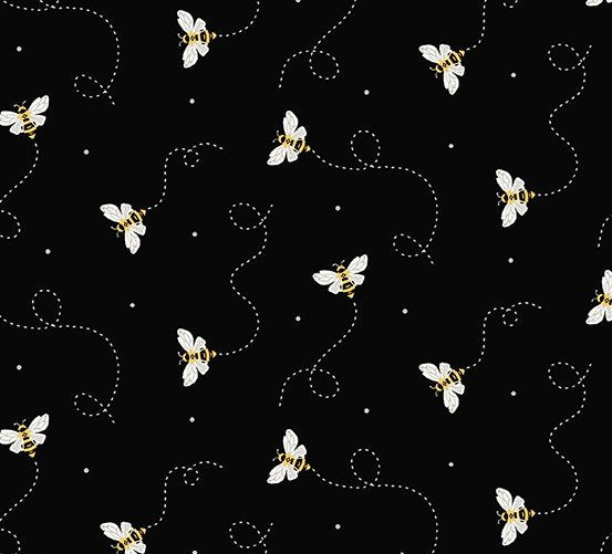 Strawberry Honey - Flying Bees - Balck - Andover - Fabric