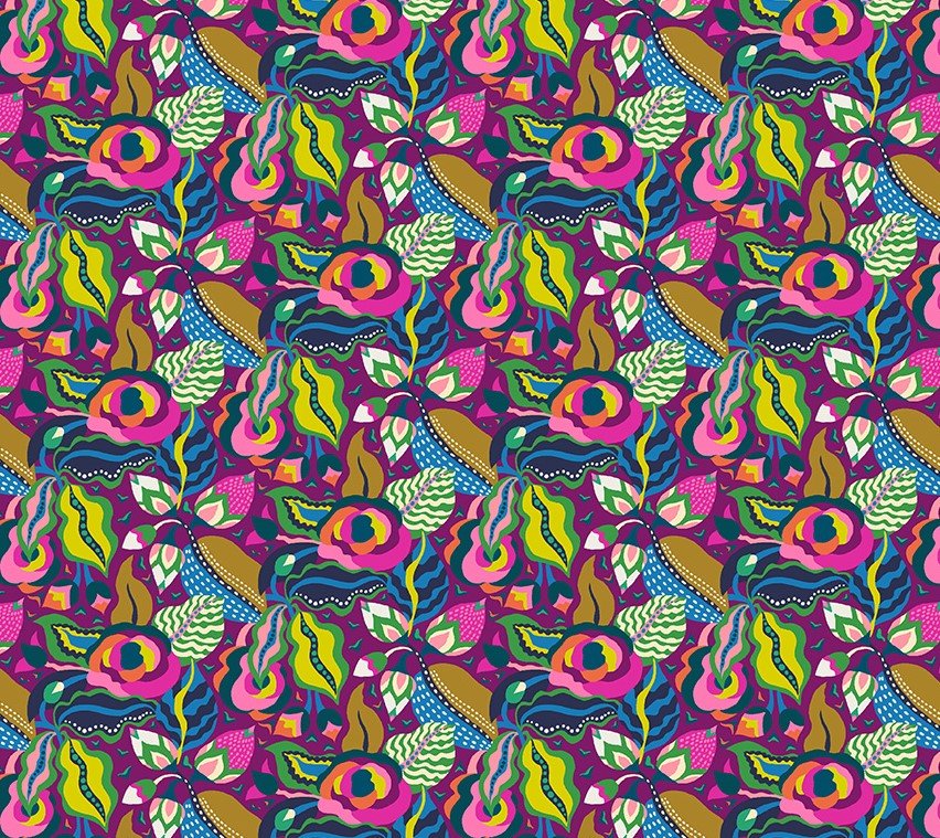 Sally Kelly - Botanica - Camellia - Grape - Windham Fabrics