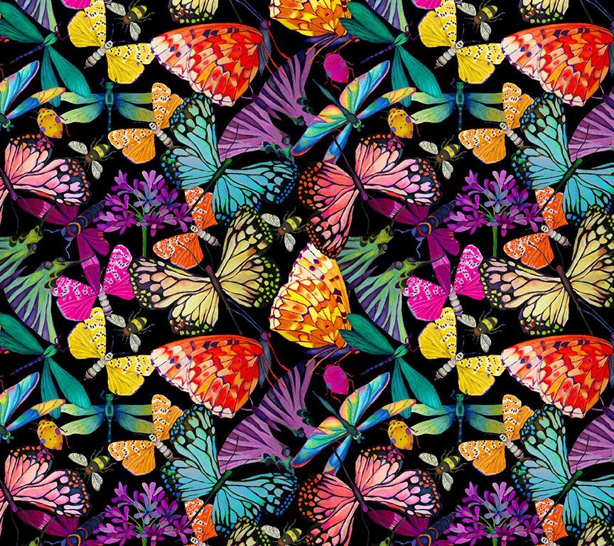 Sally Kelly - Gardenia - Flutter - Black - Windham Fabrics
