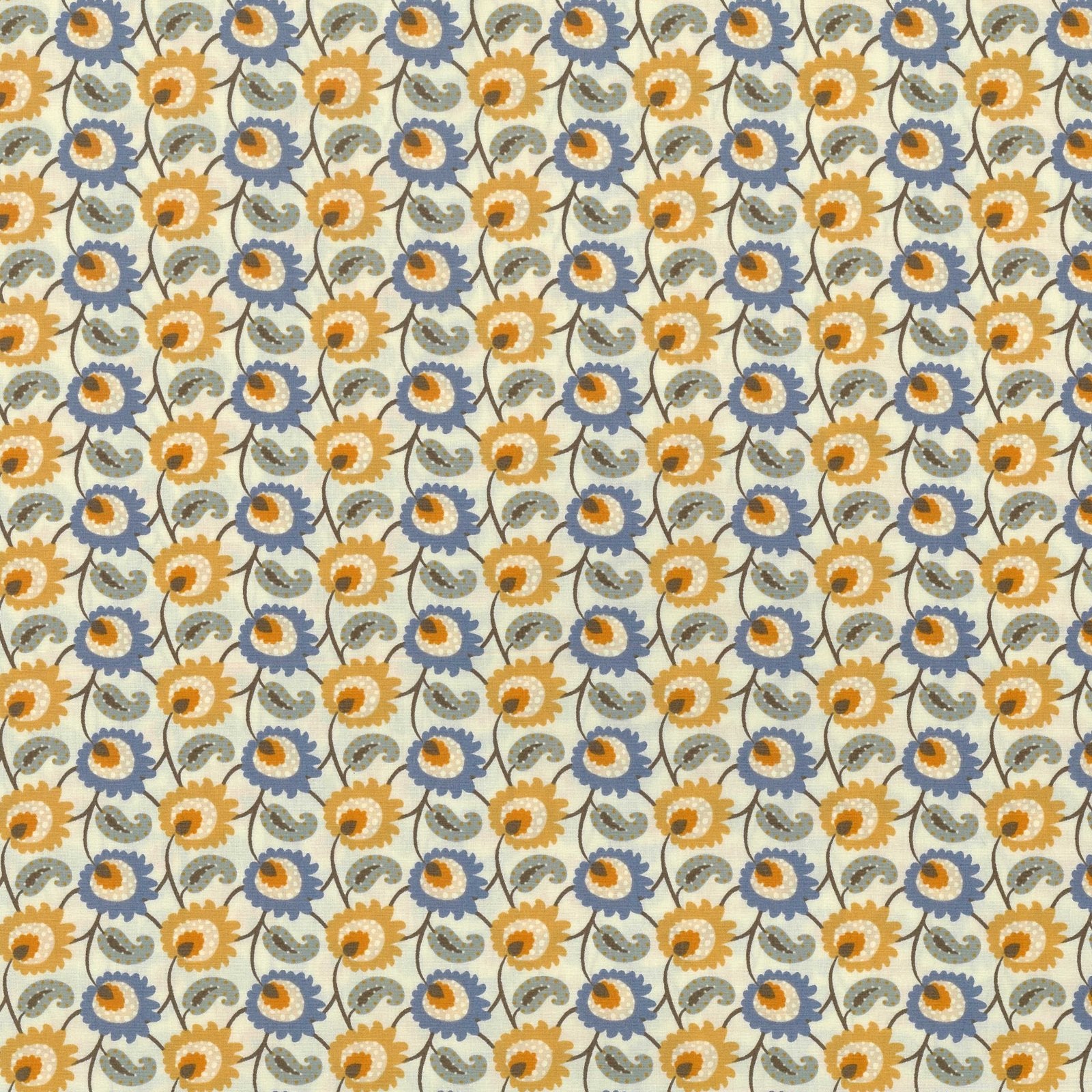Chain Of Flowers - Blue/Orange - Cotton by Kobayashi - Fabric