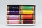 8 x Small Spools (280m) of Aurifil 80wt thread, packaged in a handy box for easy storage.