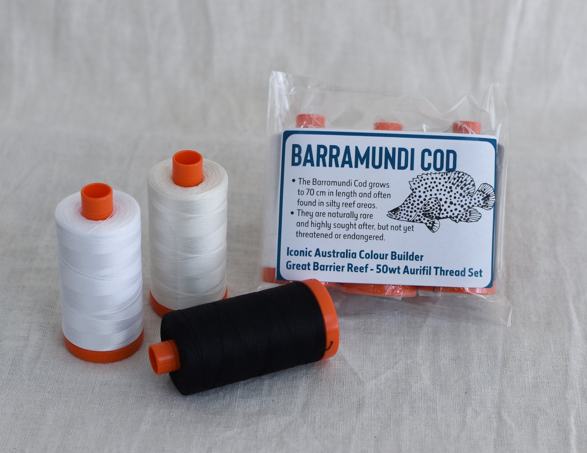 Iconic Australia Aurifil Thread Set - Great Barrier Reef 50wt Large - Black & White - Barramundi Cod