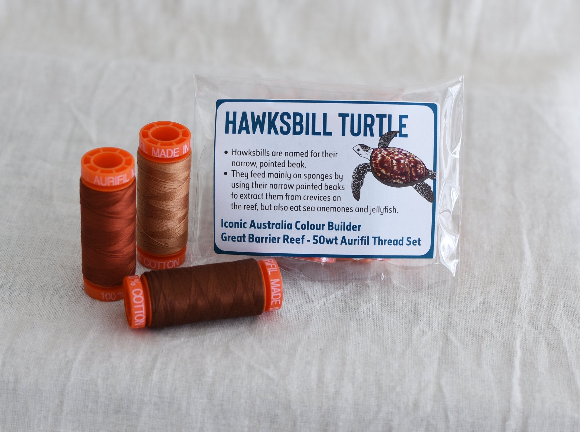 Iconic Australia Aurifil Thread Set - Great Barrier Reef 50wt Small SUNRISE - Brown - Hawksbill Turtle