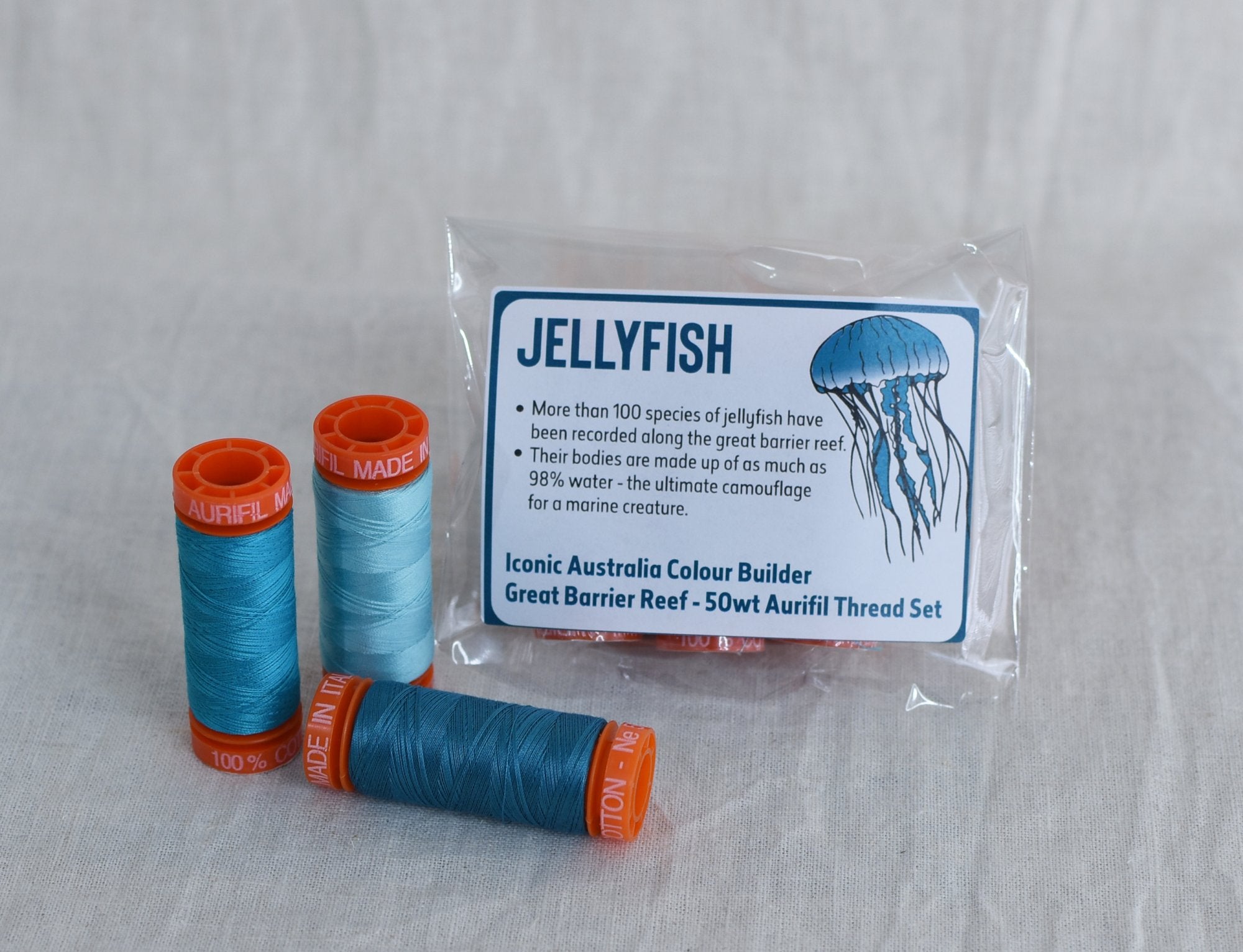 Iconic Australia Aurifil Thread Set - Great Barrier Reef 50wt Small SUNRISE - Teal - Jellyfish