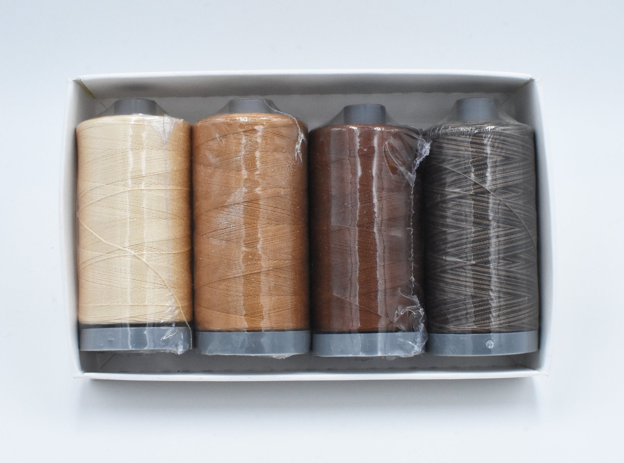 4 x Large Spools (750m) of Aurifil 28wt thread in a cohesive range, packaged in a handy box for easy storage.