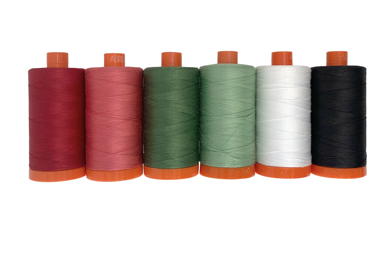 Snowflakes swirl around wintery evergreens as we put the final touches on the gifts and decorations for our holiday celebrations. Christmas Night by Monique Jacobs for Maywood Studio is an elegant holiday collection filled with stylish motifs in rich reds, greens, and blacks. Wrap up the season’s festivities with patchwork and projects that will be part of your Christmas Night celebrations for years to come. Six Large Spools of Aurifil’s versatile 50wt thread were selected to perfectly complement these festive fabrics.