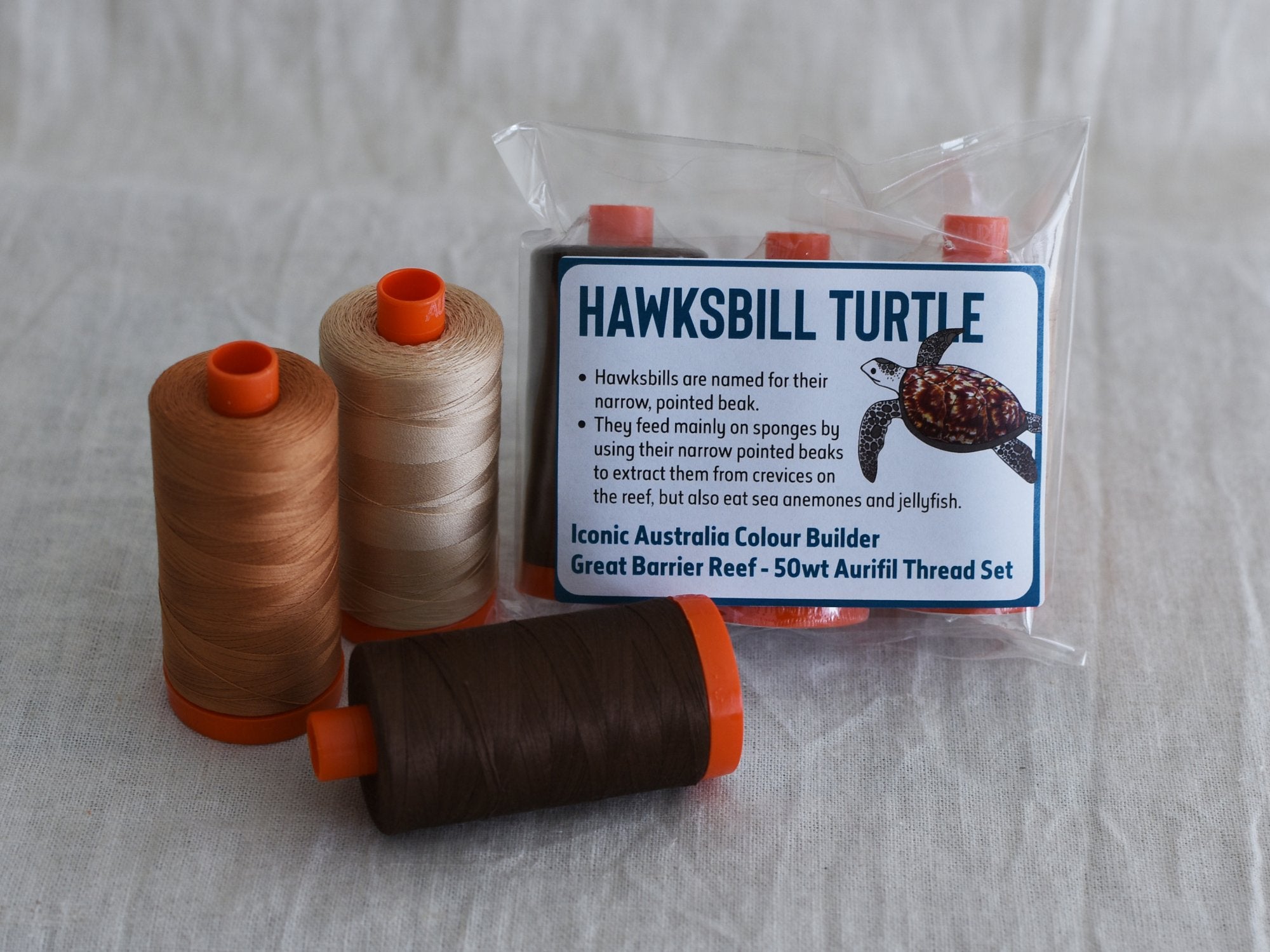 Iconic Australia Aurifil Thread Set - Great Barrier Reef 50wt Large - Brown - Hawksbill Turtle