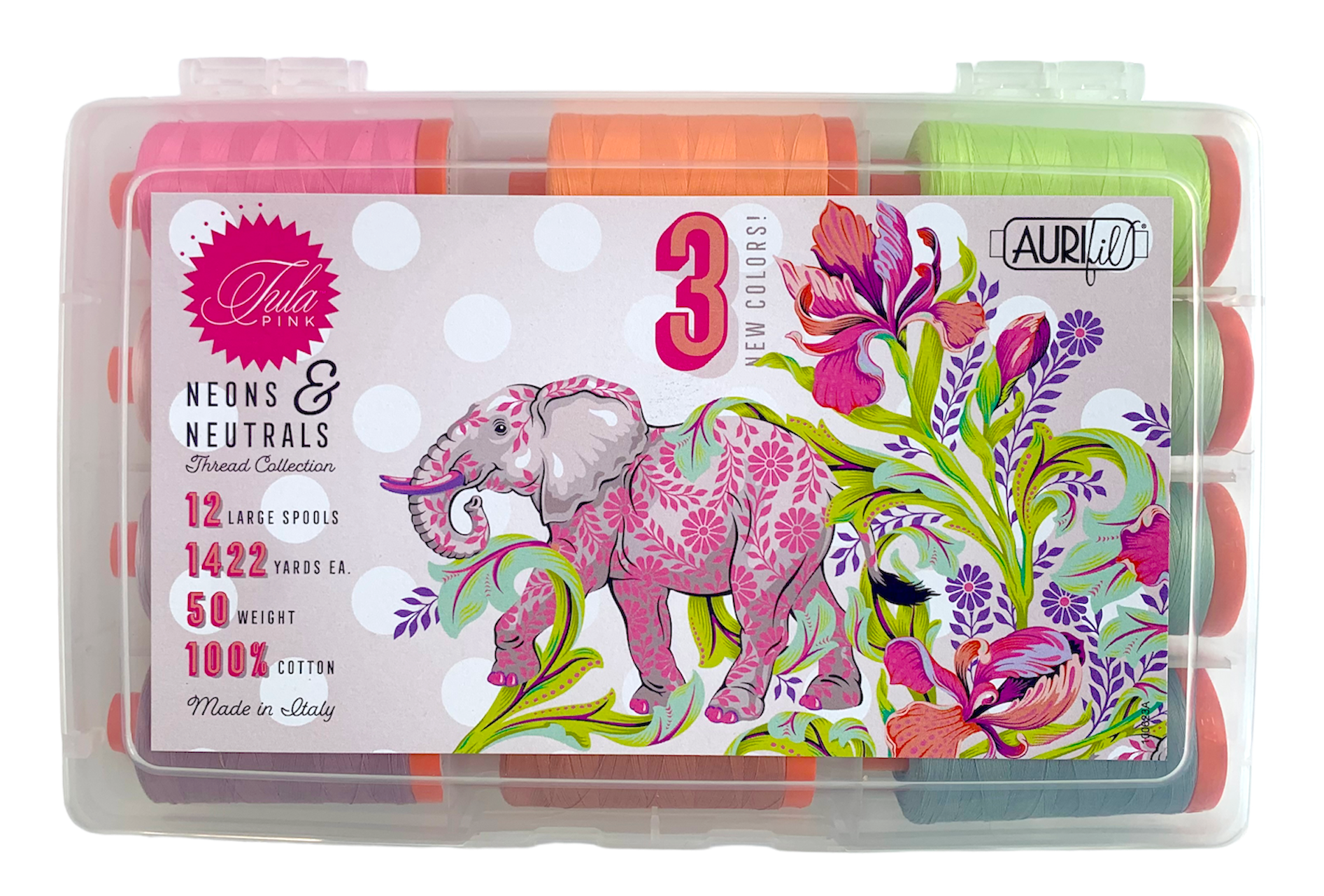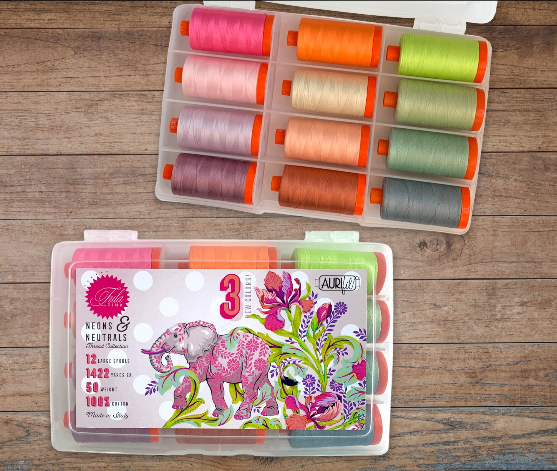 Aurifil Designer Collection - Neons & Neutrals (12 Large Spools) by Tula Pink - Free bundle *SPECIAL*