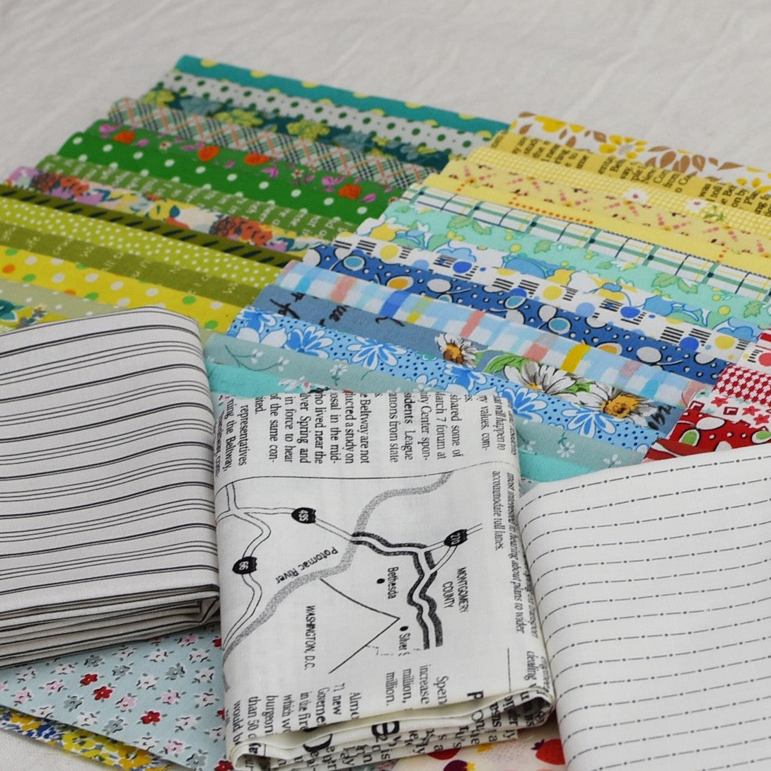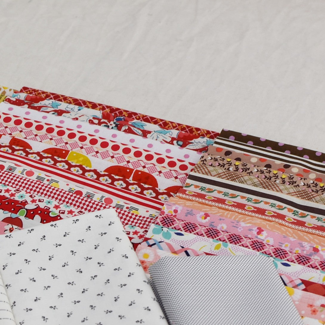 This starter kit includes the Green Tea and Sweet Beans pattern booklet and enough fabric to make all of the blocks. Includes 5 fat quarters for backgrounds