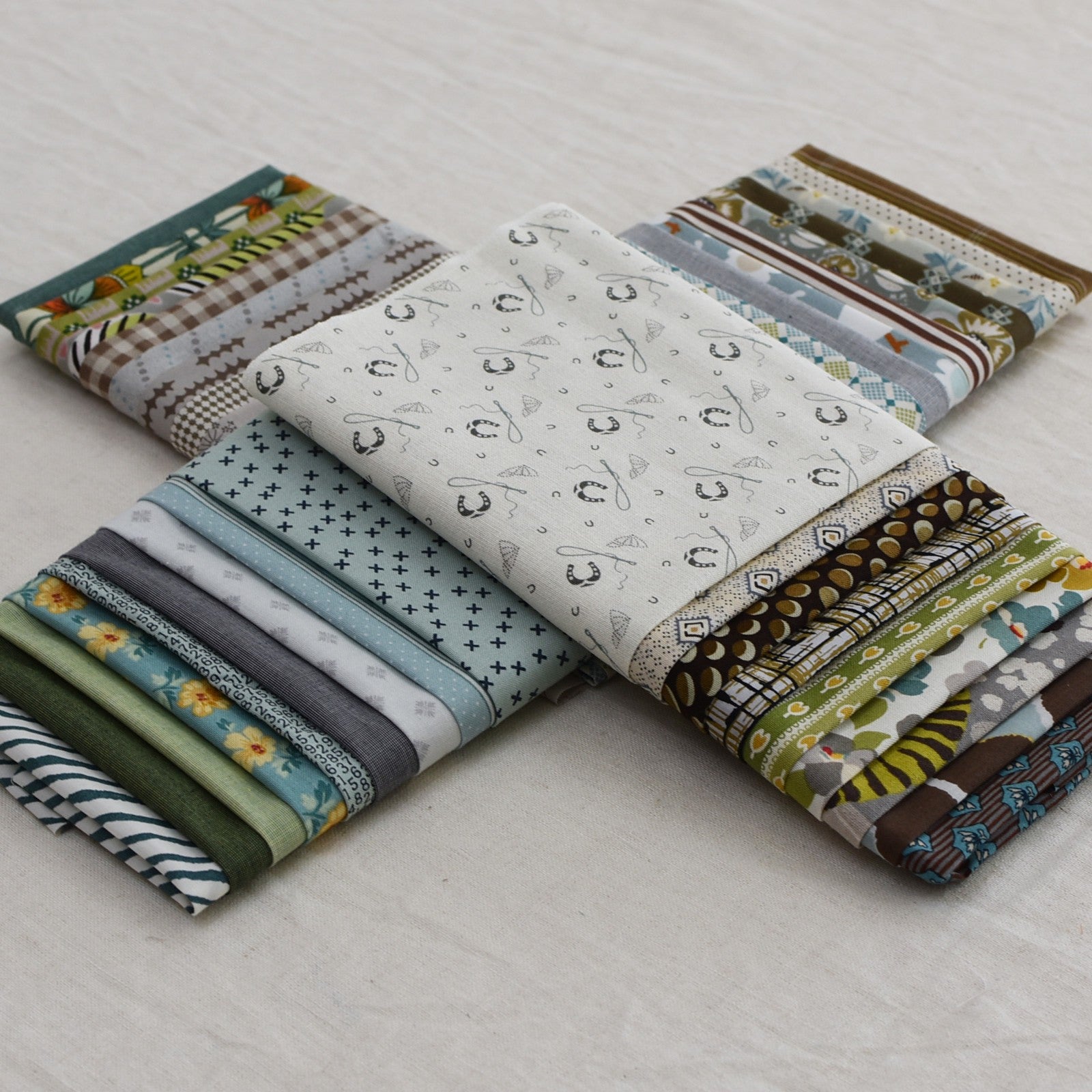 This kit features 2.25m of mossy greens with stony tones of grey and brown, chosen to give you the same look and feel as Jen's reimagined Halo quilt.