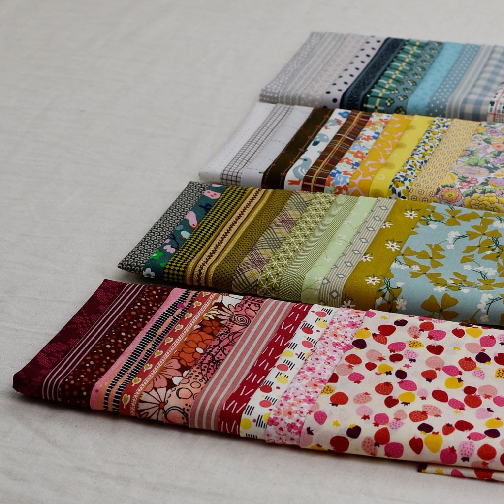 This starter kit includes fat 16th of multi coloured fabrics totalling 3 meters.