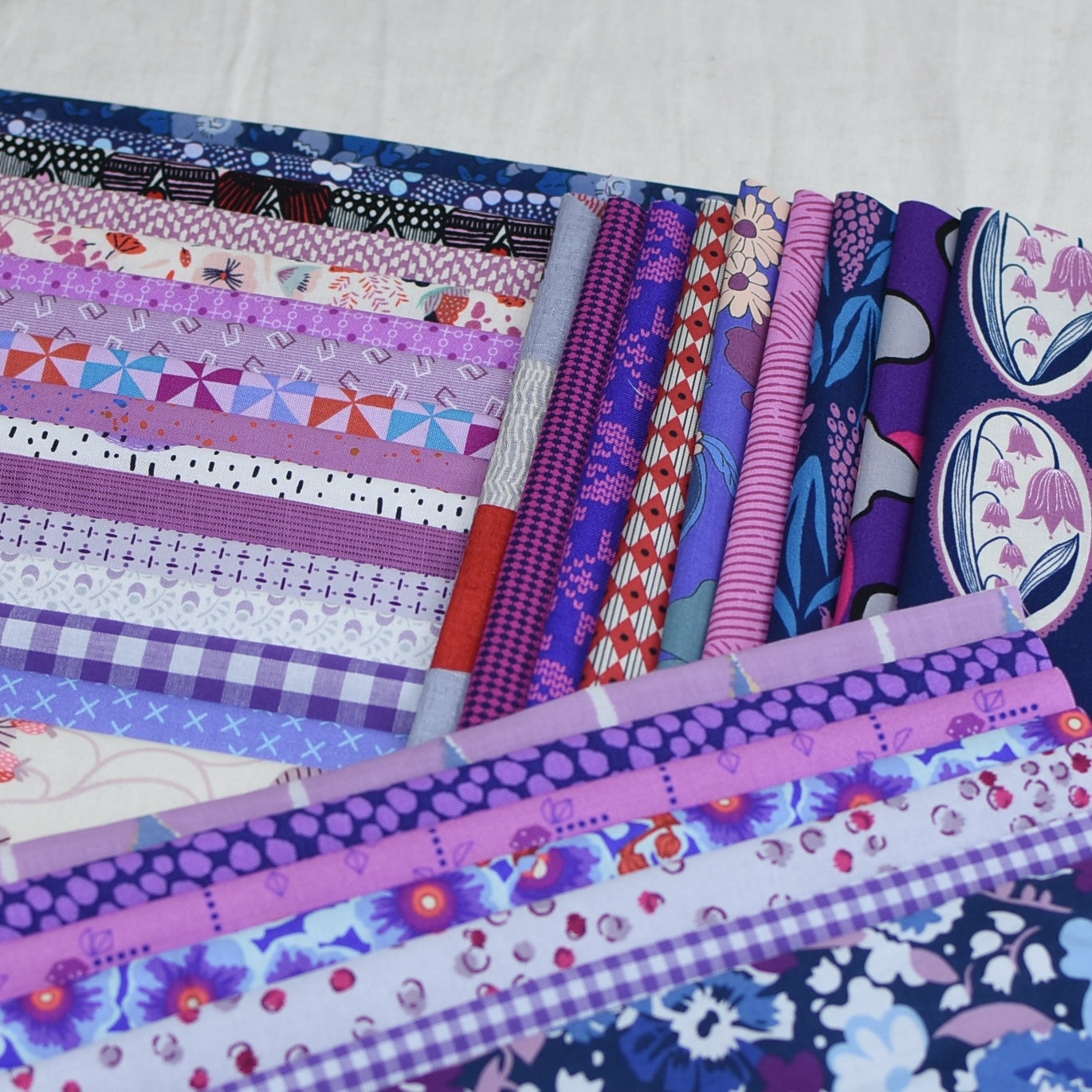 This kit features 2m of purple tones , chosen to give you the same look and feel as Jen's reimagined Megastar quilt.