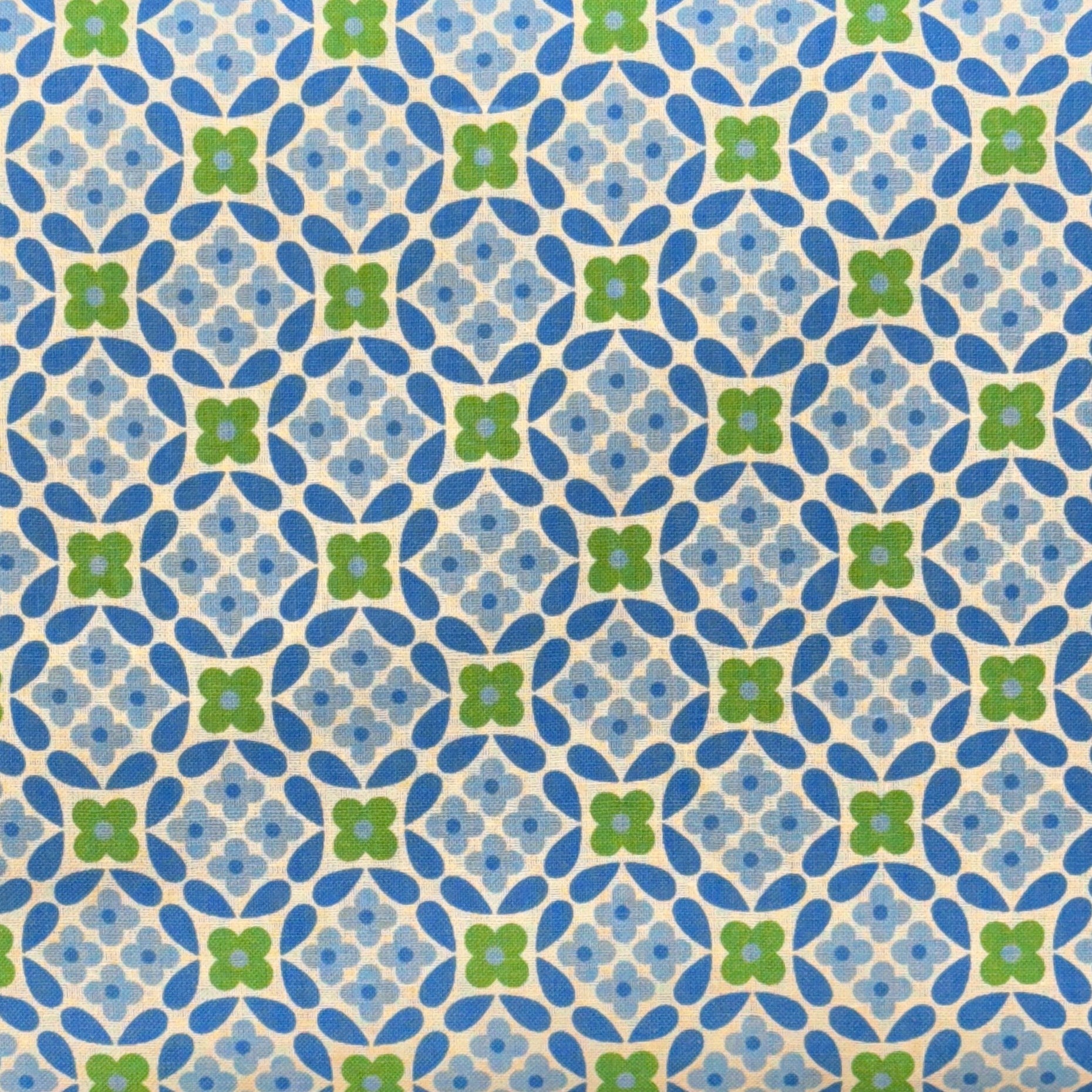 Koko Seki - 70's Design - Flower Days - Flower Circles - Blue - Japanese Fabric