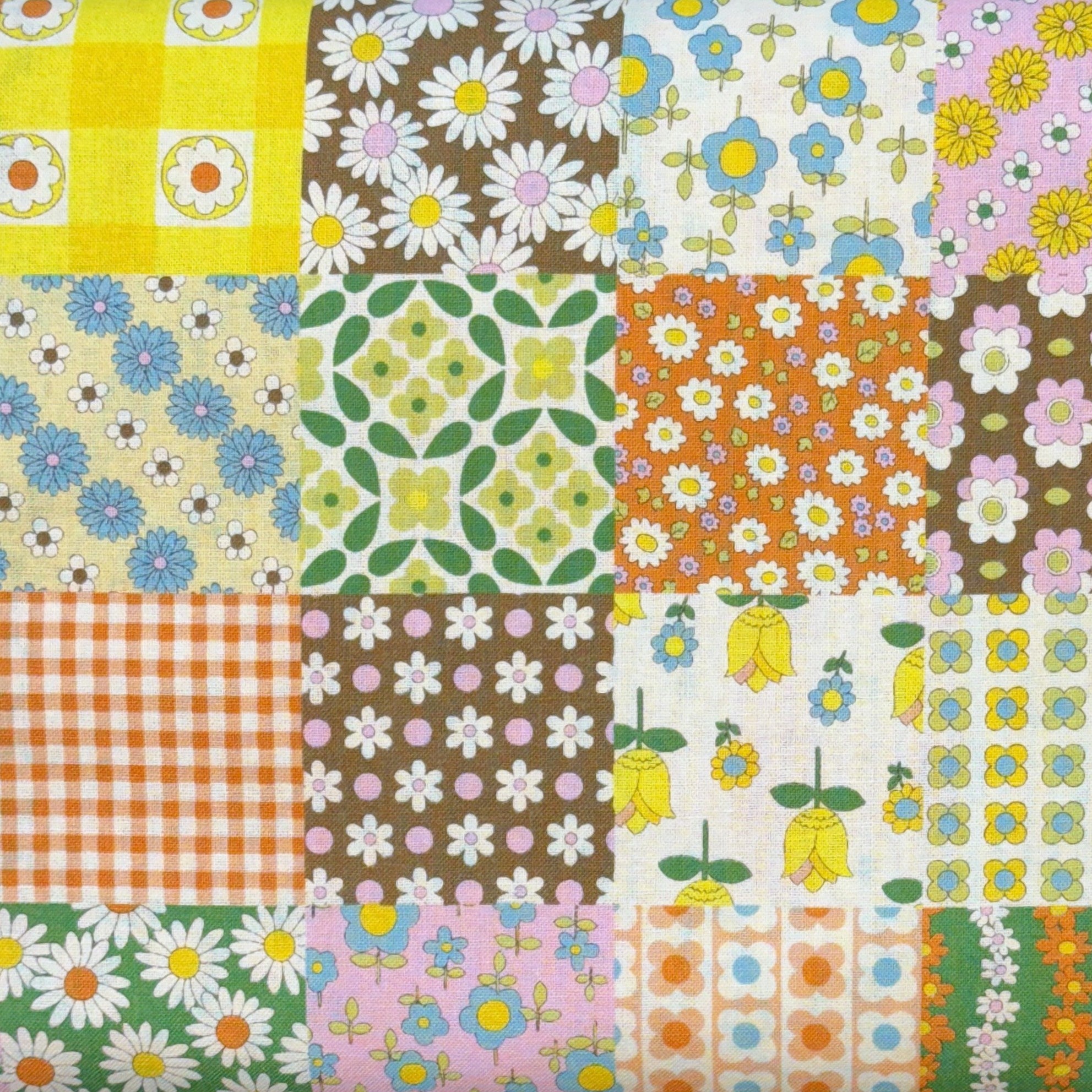 Koko Seki - 70's Design - Flower Days - Flower Patches - Orange - Japanese Fabric