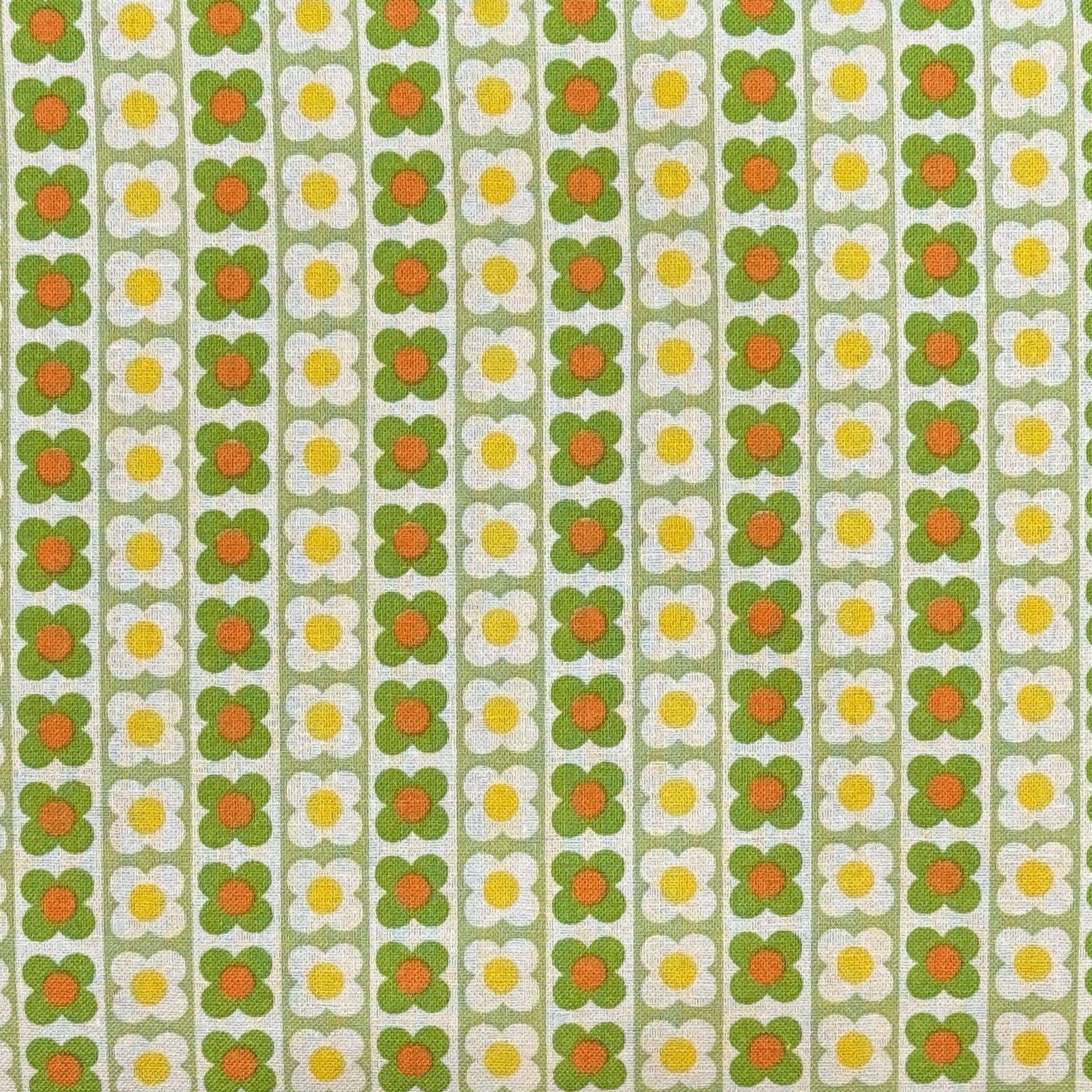 Koko Seki - 70's Design - Flower Days - Flower Stripes - Green - Japanese Fabric