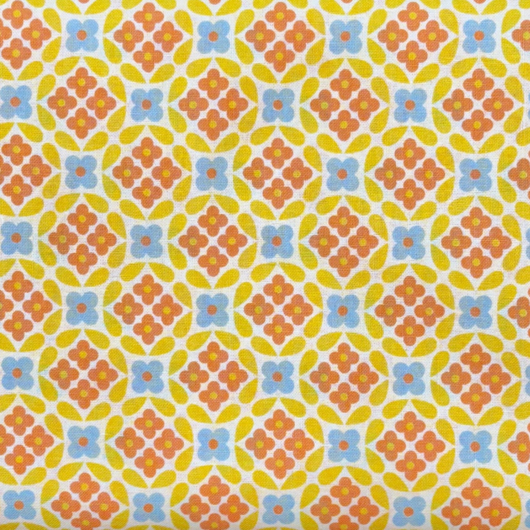 Koko Seki - 70's Design - Flower Days - Flower Circles - Yellow - Japanese Fabric