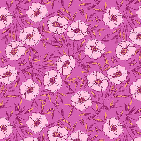 Stephanie Organes - Petals And Stitches - Sunshine Blooms - Magenta - Andover Fabric