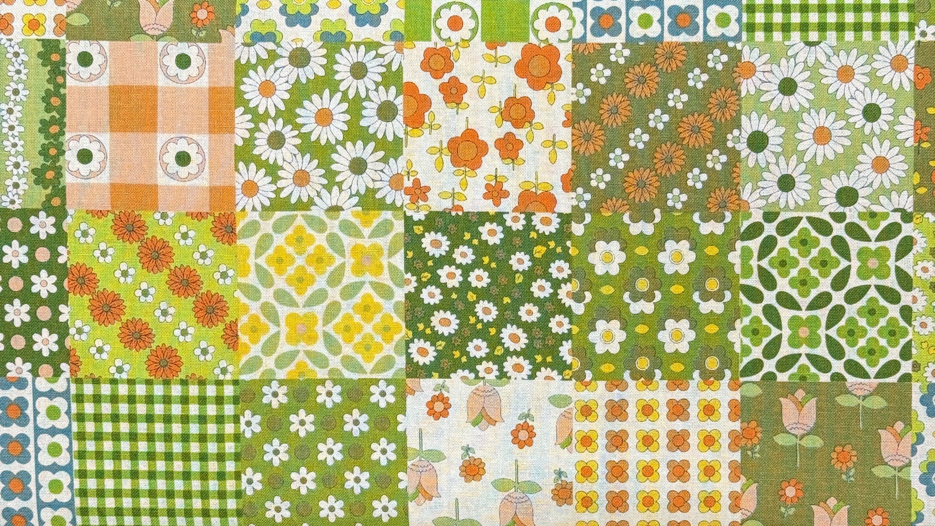 Koko Seki - 70's Design - Flower Days - Flower Patches - Green - Japanese Fabric