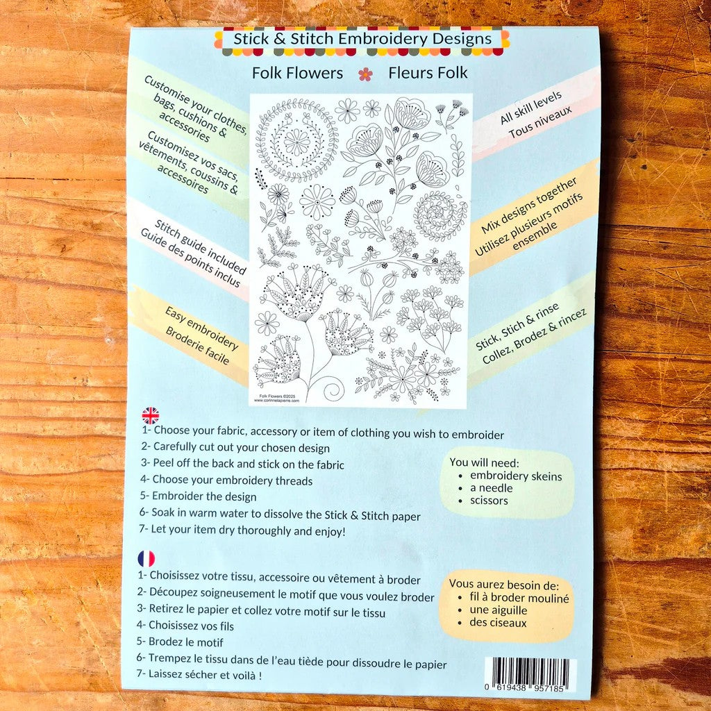 Easy to use self-adhesive water soluble transfer sheets that can be used on all washable fabrics to personalise and decorate your textiles. Simply cut out the design, peel off the backing, stick onto your choice of fabric or clothing and embroider. Once completed, the pattern can be rinsed away in warm water leaving just your very own beautiful embroidered creation.