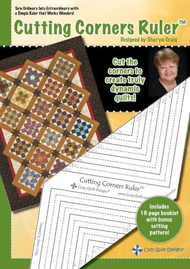 How does it work? It’s simple! The Cutting Corners Ruler™ gives you the simple and accurate measurements to eliminate a corner from a block, a square, a rectangle or triangle, while leaving the seam allowance on the remaining piece. Just add another fabric (pieced or not) and turn plain blocks into complex beauties.