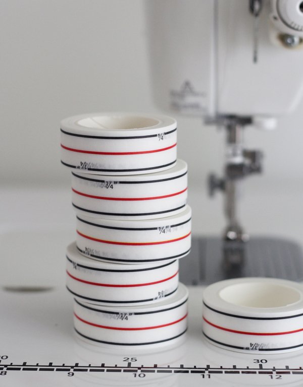 Diagonal Seam Tape is simply washi tape that is placed on the front plate of your sewing machine to act as a guide while you are sewing diagonal seams.