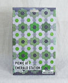 This quilt reminds Louise of childhood picnics in the hills outside of Melbourne when she would head off in the Summer holidays for a ride on the steam train 'Puffing Billy'. Winding up through the mountain track, with legs dangling from the open side carriages, on our way towards the final station and our picnic destination, Emerald Lake. This fun and simple hexagon quilt would make a perfect addition to your next picnic adventure!