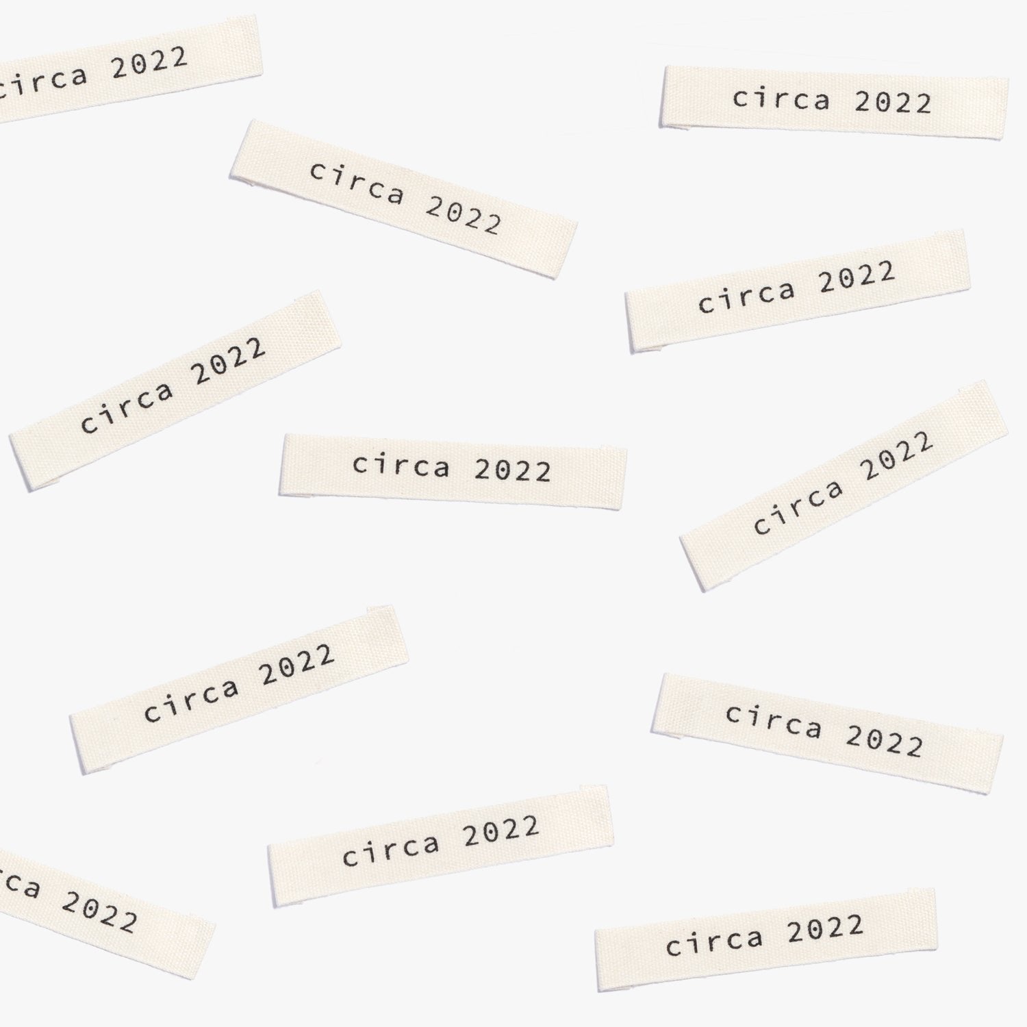 End folded, this label is ideally sewn onto the garment (either inside or displayed visibly) by top stitching each end.