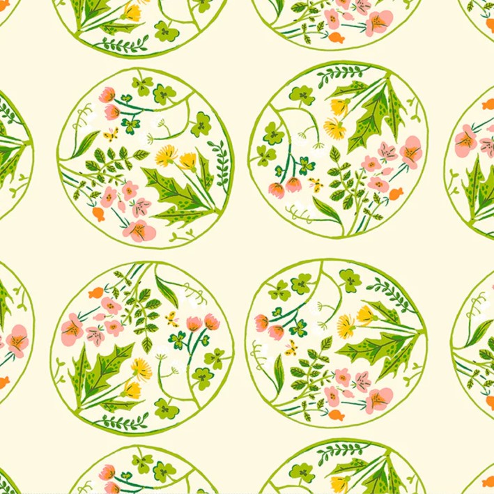 1.7m Length - Heather Ross - Studio Edit - Floral Wreaths - Cream - Windham Fabrics