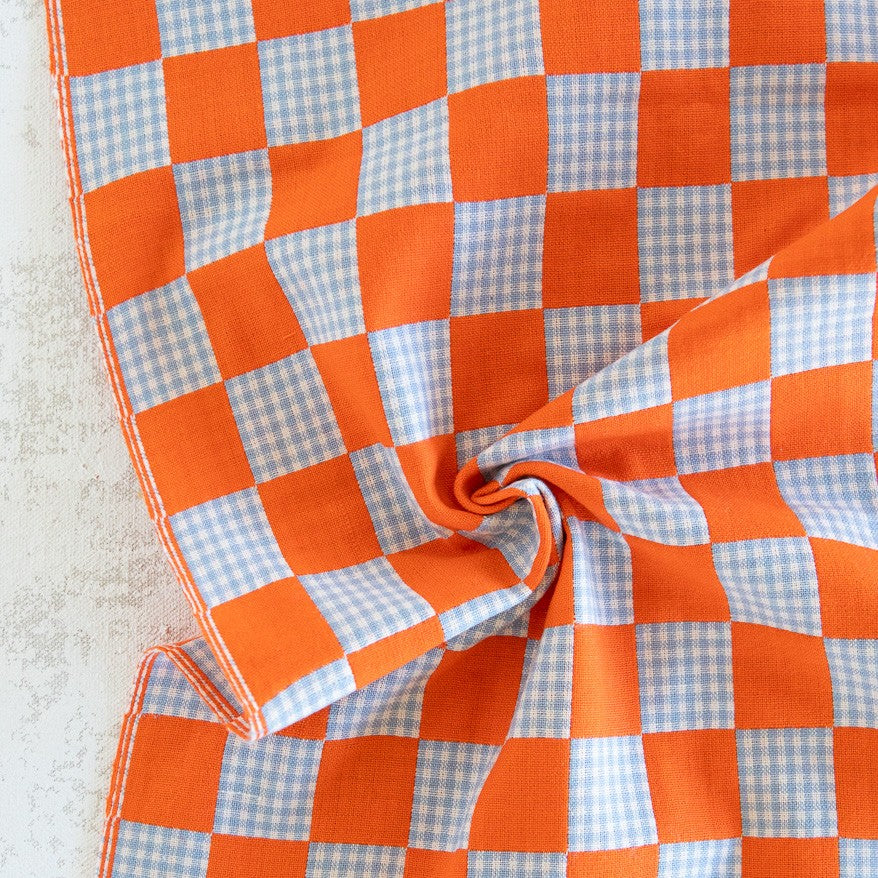 A double cloth fabric that is 100% reversible (ie. no lining needed!). Made from soft 100% cotton & is perfect for apparel, home decor & even used for quilting. The large colored squares measure 7/8″ x 1″