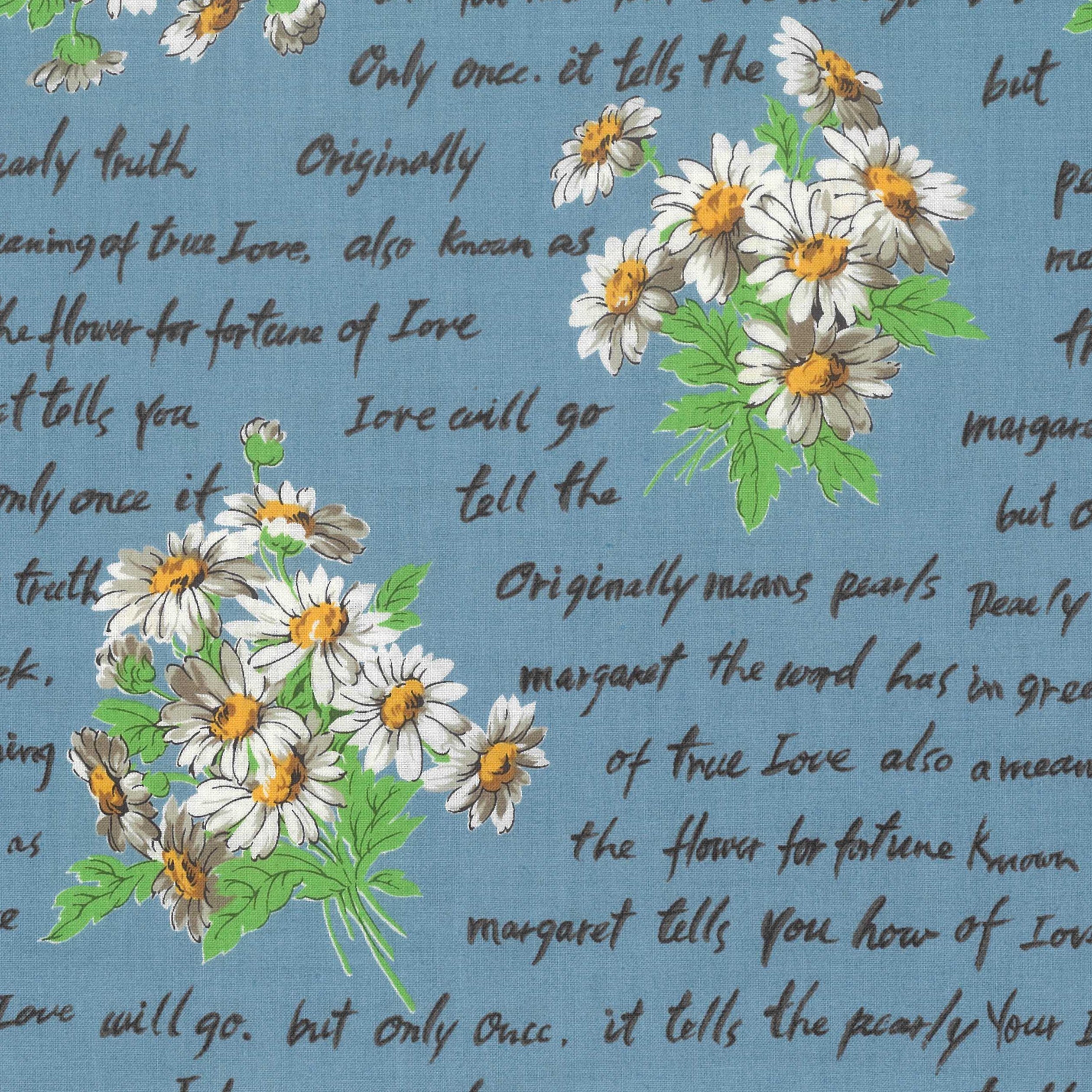 80cm Length - Suzuko Koseki - Daisy Script - Blue - Yuwa - Fabric