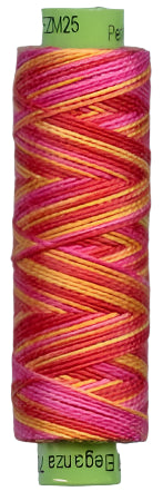Recommended needle size: Chenille 24/26 Milliners 3 Sue Spargo's Eleganza Perle cotton collection is designed to meet the specific needs of hand stitchers, embroiderers and embellishers. Passionate about stitching, Sue set out to design a product of utmost quality in collaboration with Wonderfil Specialty Threads. Eleganza is made from 100% Giza 88, the highest calibre extra long staple Egyptian cotton. Fibers spun with this fiber create a thread of extreme softness, strength and luster. An extra 15% twist has been incorporated into the design of Eleganza resulting in a thread of superior stability, uniformity and sewability. Eleganza is double gassed and mercerized to eliminate build up of lint and snub, largely enriching the appeal of stitchery. Sue has designed a bright, saturated color palette along with a unique line of variegates. Eleganza's collection of variegates contain extra short variegations in order to provide rapid color change on small scale designs.