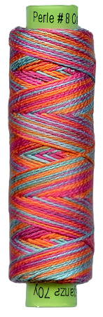 Sue Spargo's Eleganza Perle cotton collection is designed to meet the specific needs of hand stitchers, embroiderers and embellishers. Passionate about stitching, Sue set out to design a product of utmost quality in collaboration with Wonderfil Specialty Threads. Eleganza is made from 100% Giza 88, the highest calibre extra long staple Egyptian cotton. Fibers spun with this fiber create a thread of extreme softness, strength and luster. An extra 15% twist has been incorporated into the design of Eleganza resulting in a thread of superior stability, uniformity and sewability. Eleganza is double gassed and mercerized to eliminate build up of lint and snub, largely enriching the appeal of stitchery. Sue has designed a bright, saturated color palette along with a unique line of variegates. Eleganza's collection of variegates contain extra short variegations in order to provide rapid color change on small scale designs.