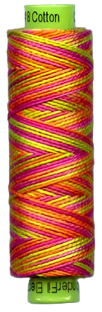 Sue Spargo's Eleganza Perle cotton collection is designed to meet the specific needs of hand stitchers, embroiderers and embellishers. Passionate about stitching, Sue set out to design a product of utmost quality in collaboration with Wonderfil Specialty Threads. Eleganza is made from 100% Giza 88, the highest calibre extra long staple Egyptian cotton. Fibers spun with this fiber create a thread of extreme softness, strength and luster. An extra 15% twist has been incorporated into the design of Eleganza resulting in a thread of superior stability, uniformity and sewability. Eleganza is double gassed and mercerized to eliminate build up of lint and snub, largely enriching the appeal of stitchery. Sue has designed a bright, saturated color palette along with a unique line of variegates. Eleganza's collection of variegates contain extra short variegations in order to provide rapid color change on small scale designs.