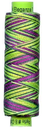 Sue Spargo's Eleganza Perle cotton collection is designed to meet the specific needs of hand stitchers, embroiderers and embellishers. Passionate about stitching, Sue set out to design a product of utmost quality in collaboration with Wonderfil Specialty Threads. Eleganza is made from 100% Giza 88, the highest calibre extra long staple Egyptian cotton. Fibers spun with this fiber create a thread of extreme softness, strength and luster. An extra 15% twist has been incorporated into the design of Eleganza resulting in a thread of superior stability, uniformity and sewability. Eleganza is double gassed and mercerized to eliminate build up of lint and snub, largely enriching the appeal of stitchery. Sue has designed a bright, saturated color palette along with a unique line of variegates. Eleganza's collection of variegates contain extra short variegations in order to provide rapid color change on small scale designs.