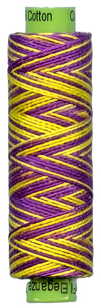 Sue Spargo's Eleganza Perle cotton collection is designed to meet the specific needs of hand stitchers, embroiderers and embellishers. Passionate about stitching, Sue set out to design a product of utmost quality in collaboration with Wonderfil Specialty Threads. Eleganza is made from 100% Giza 88, the highest calibre extra long staple Egyptian cotton. Fibers spun with this fiber create a thread of extreme softness, strength and luster. An extra 15% twist has been incorporated into the design of Eleganza resulting in a thread of superior stability, uniformity and sewability. Eleganza is double gassed and mercerized to eliminate build up of lint and snub, largely enriching the appeal of stitchery. Sue has designed a bright, saturated color palette along with a unique line of variegates. Eleganza's collection of variegates contain extra short variegations in order to provide rapid color change on small scale designs.