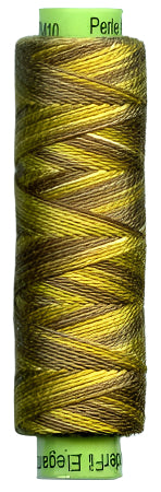 Sue Spargo's Eleganza Perle cotton collection is designed to meet the specific needs of hand stitchers, embroiderers and embellishers. Passionate about stitching, Sue set out to design a product of utmost quality in collaboration with Wonderfil Specialty Threads. Eleganza is made from 100% Giza 88, the highest calibre extra long staple Egyptian cotton. Fibers spun with this fiber create a thread of extreme softness, strength and luster. An extra 15% twist has been incorporated into the design of Eleganza resulting in a thread of superior stability, uniformity and sewability. Eleganza is double gassed and mercerized to eliminate build up of lint and snub, largely enriching the appeal of stitchery. Sue has designed a bright, saturated color palette along with a unique line of variegates. Eleganza's collection of variegates contain extra short variegations in order to provide rapid color change on small scale designs.