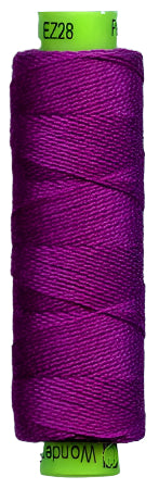 Recommended needle size: Chenille 24/26 Milliners 3 Sue Spargo's Eleganza Perle cotton collection is designed to meet the specific needs of hand stitchers, embroiderers and embellishers. Passionate about stitching, Sue set out to design a product of utmost quality in collaboration with Wonderfil Specialty Threads. Eleganza is made from 100% Giza 88, the highest calibre extra long staple Egyptian cotton. Fibers spun with this fiber create a thread of extreme softness, strength and luster. An extra 15% twist has been incorporated into the design of Eleganza resulting in a thread of superior stability, uniformity and sewability. Eleganza is double gassed and mercerized to eliminate build up of lint and snub, largely enriching the appeal of stitchery. Sue has designed a bright, saturated color palette along with a unique line of variegates. Eleganza's collection of variegates contain extra short variegations in order to provide rapid color change on small scale designs.