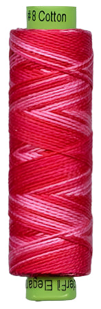 Recommended needle size: Chenille 24/26 Milliners 3 Sue Spargo's Eleganza Perle cotton collection is designed to meet the specific needs of hand stitchers, embroiderers and embellishers. Passionate about stitching, Sue set out to design a product of utmost quality in collaboration with Wonderfil Specialty Threads. Eleganza is made from 100% Giza 88, the highest calibre extra long staple Egyptian cotton. Fibers spun with this fiber create a thread of extreme softness, strength and luster. An extra 15% twist has been incorporated into the design of Eleganza resulting in a thread of superior stability, uniformity and sewability. Eleganza is double gassed and mercerized to eliminate build up of lint and snub, largely enriching the appeal of stitchery. Sue has designed a bright, saturated color palette along with a unique line of variegates. Eleganza's collection of variegates contain extra short variegations in order to provide rapid color change on small scale designs.