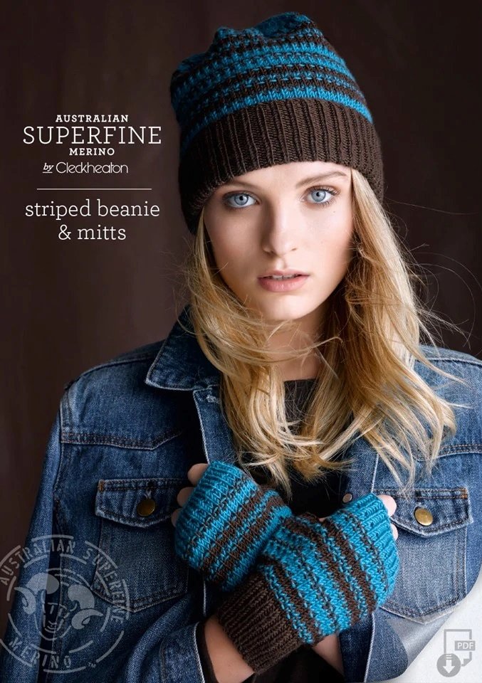 Size: Beanie - to fit head 56cm, Mitts - to fit hand circumference (above thumb) 18cm and length 18cm