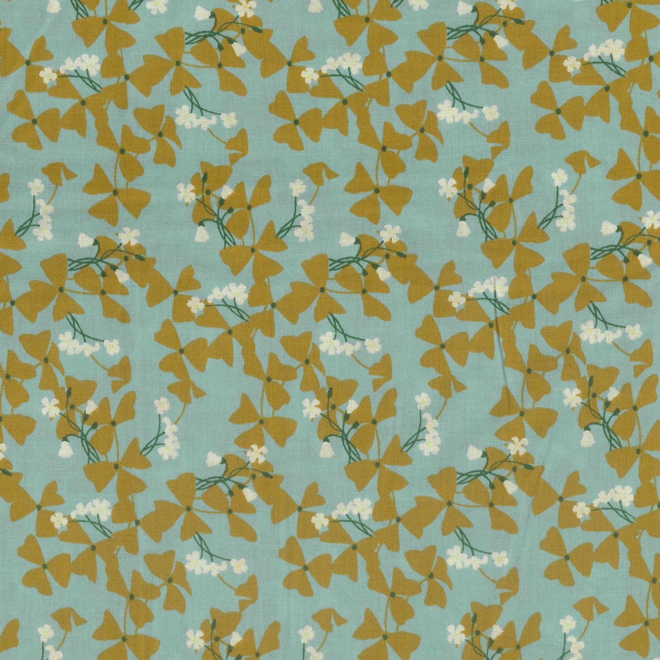 2m Length - Clover Flower - Lawn Fabric - Blue/Green - Sevenberry Fabric