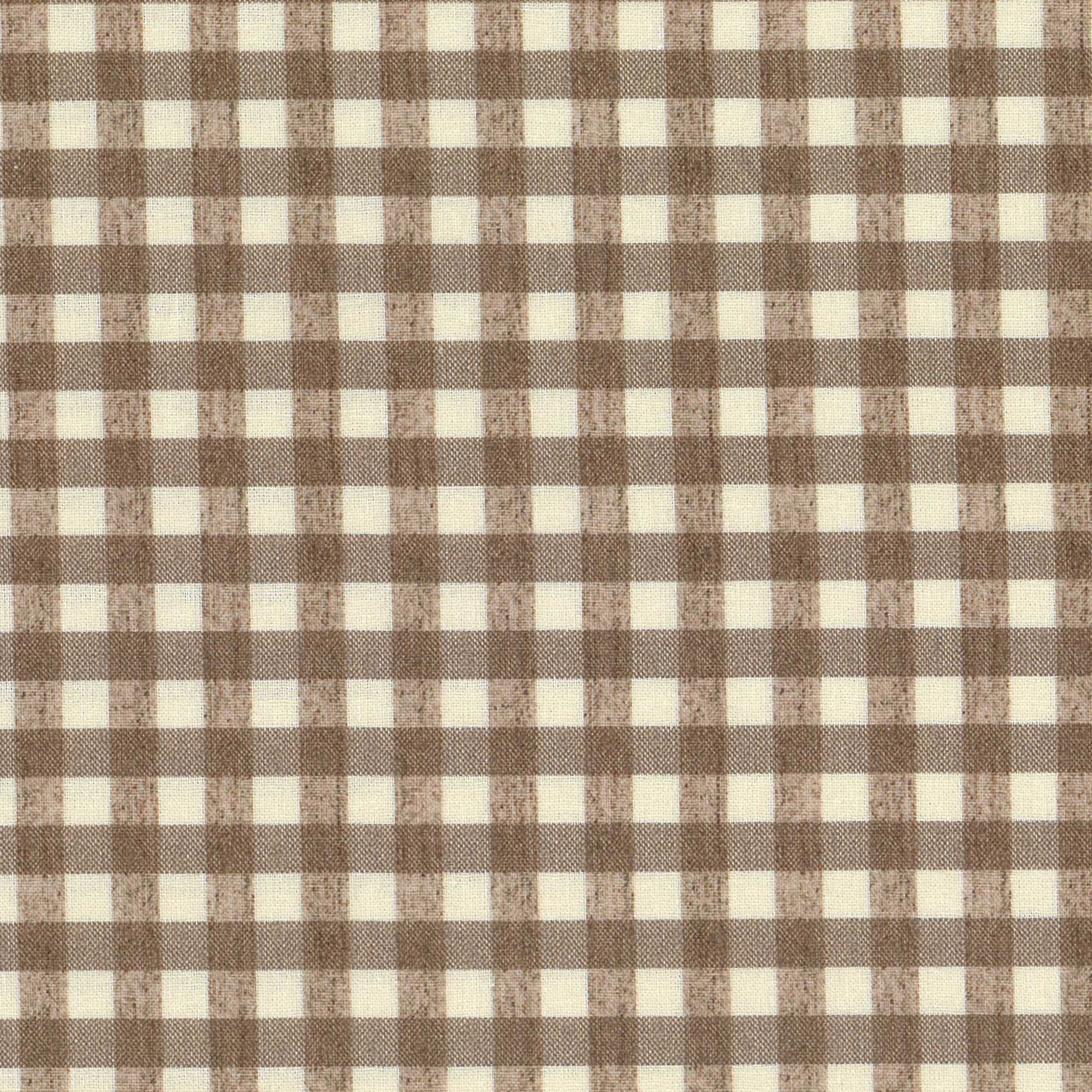 Cotton Printed Sheeting - Gingham - Cream/Brown - Japanese Fabric
