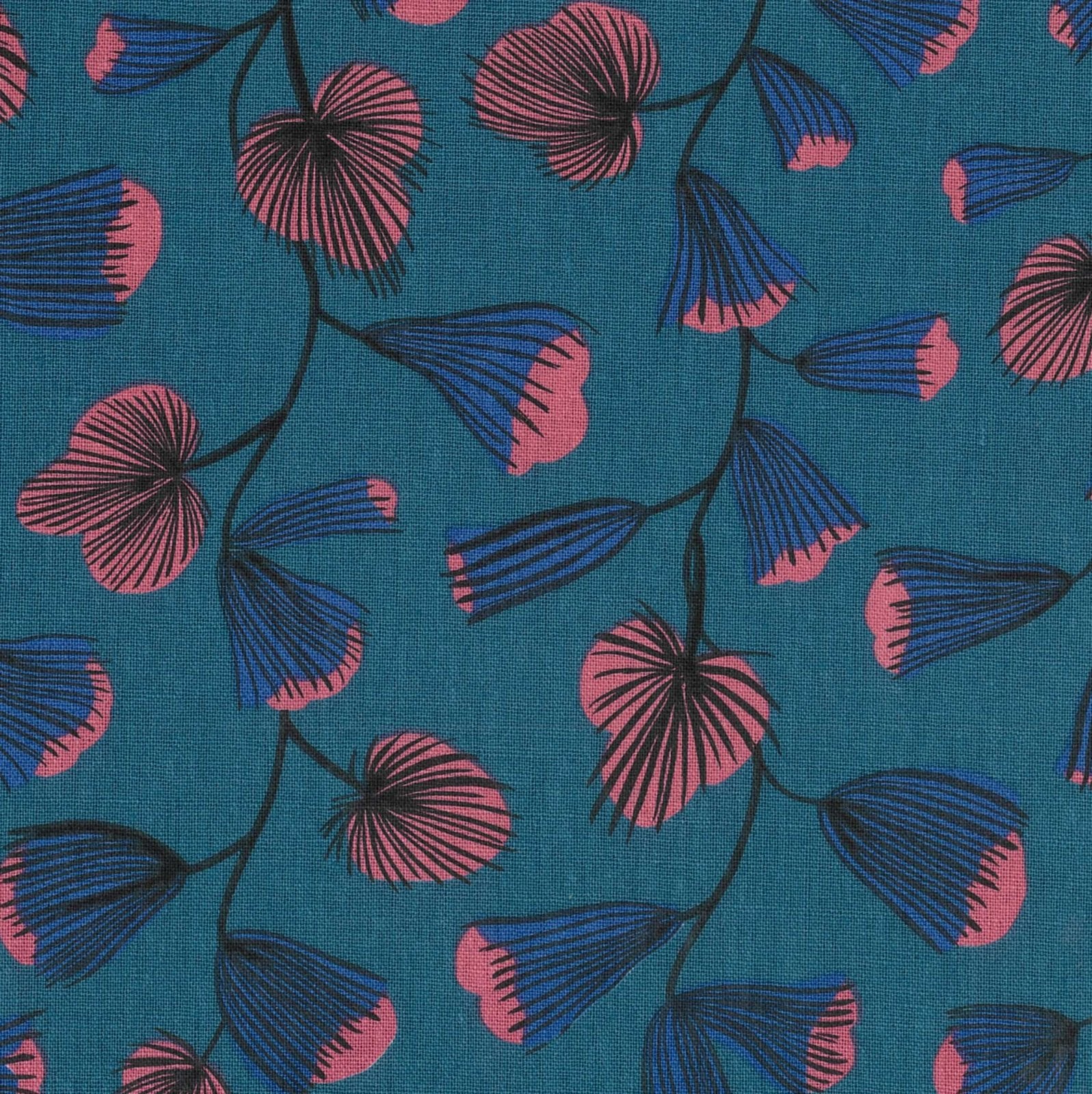 Cotton/Linen - Wonderlust Collection - Floral Blue - Handworks Fabric