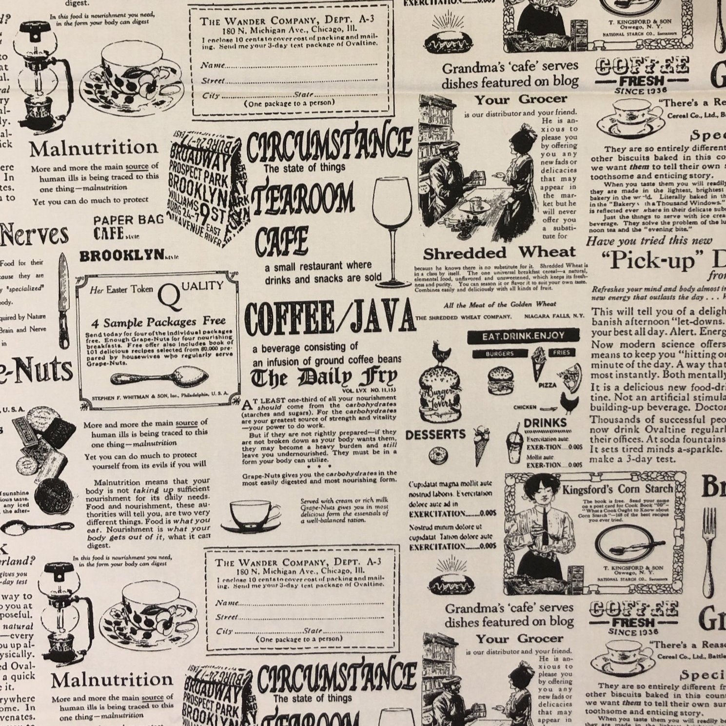 1.4m Length - Vintage Advertising - Taupe - Sevenberry - Fabric