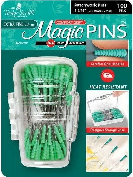 Magic Quilting Pins™ are ideal for using with multiple layers of fabric, fabrics with loose weaves, synthetic furs, plush velvets and bulky fabrics. A pleasure to use with their Comfort Grip™ handles they're perfect for piecing, needle-turn appliqué work and for quilt basting.